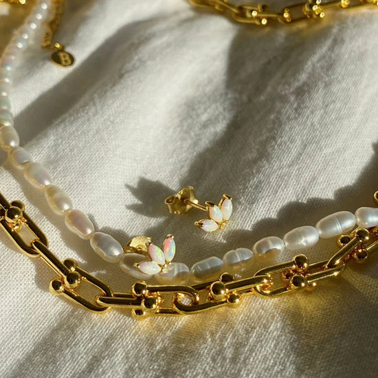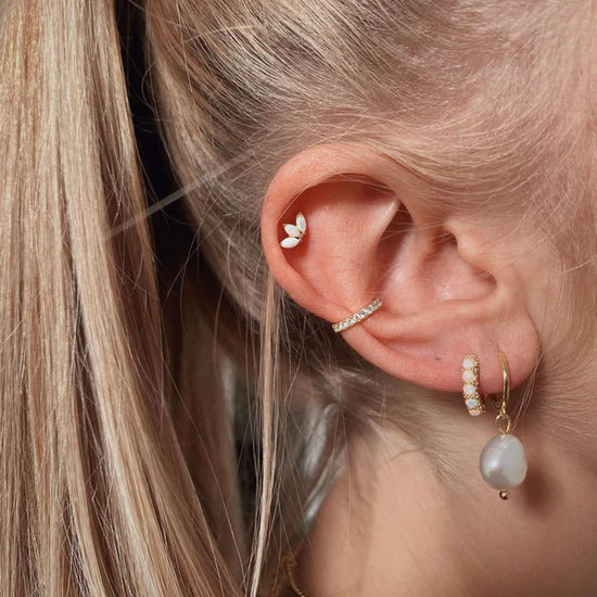 Der Ohrstecker Faro von dem Münchener Atelier Brandlinger besticht durch den australischen Edelstein Opal in Form einer Lotusblüte und schimmert in den buntesten Farben. Dem Opal wird nachgesagt, dass dieser das Empfinden stärkt, die Wahrnehmung verfestigt und Inspiration schenken soll. Die wunderschöne Lotusblütenform macht sich ebenso gut als Helix-Piercing.