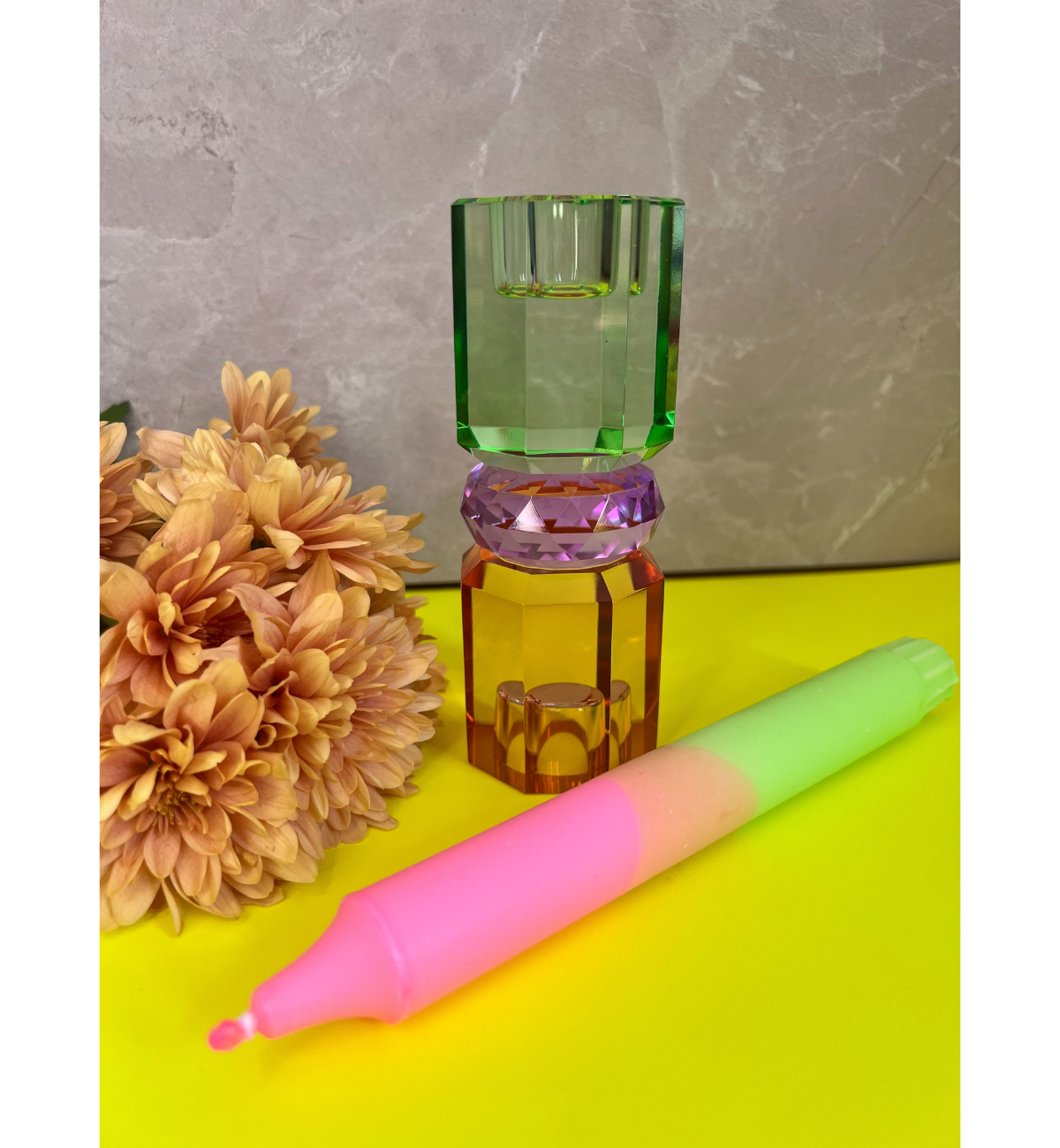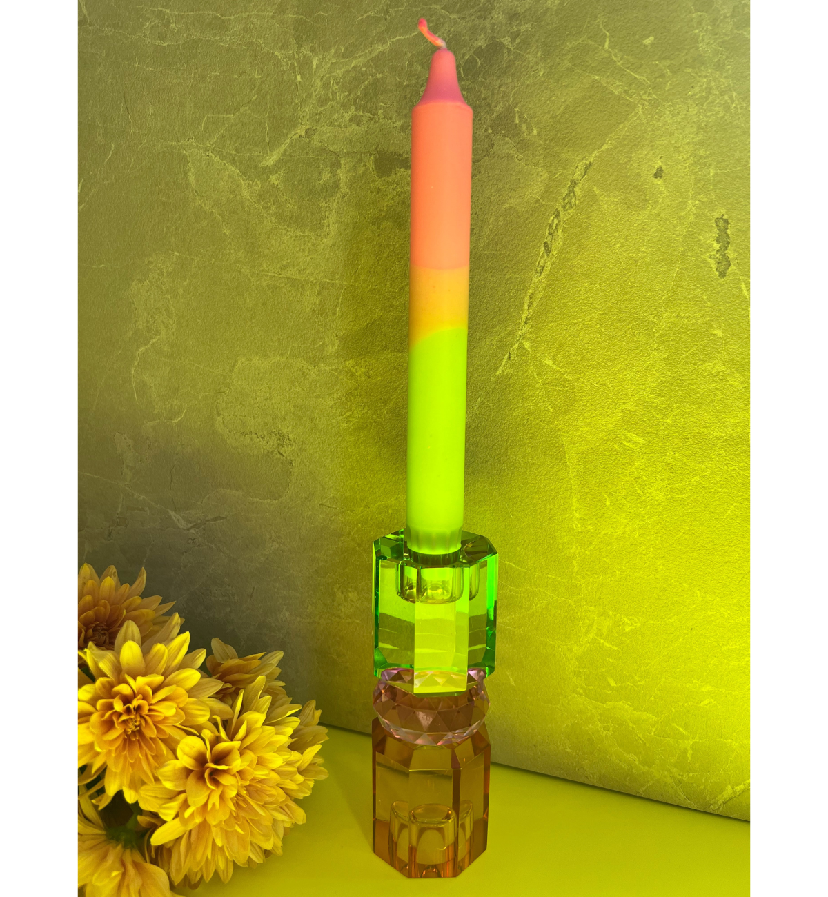 Die Kristall Kerzenhalter von C’est Bon zeichnen sich durch deren bezaubernden Farbvielfalt und deren mannigfaltigen Formen aus. Jeder Kerzenhalter für sich ist ein absoluter Eyecatcher, der eine stimmungsvolle Atmosphäre durch lebendiges Colour-Blocking in deinem bestehenden Interieur hervorruft. Es fällt wirklich schwer, sich zu entscheiden, weil alle Kerzenhalter so einzigartig sind. Aber warum entscheiden? Die Kristall Kerzenhalter mit ihren unterschiedlichen Formen und Farben erzielen in Kombination eine magisch anziehende Wirkung und Präsenz.