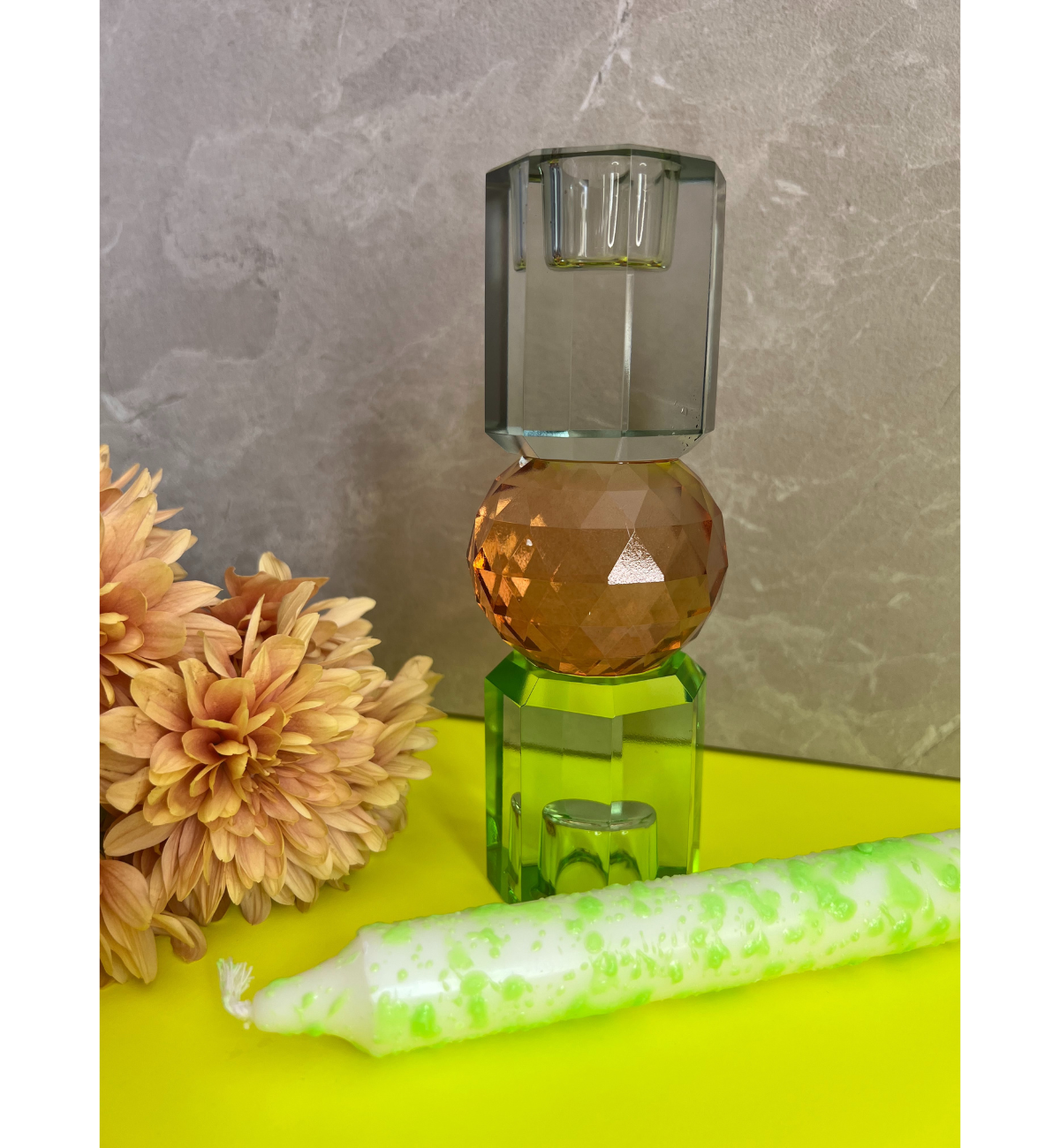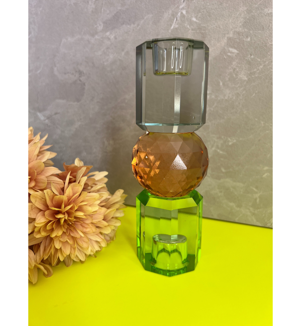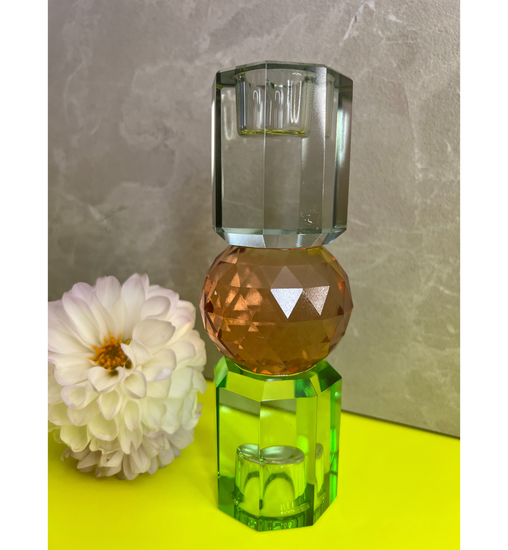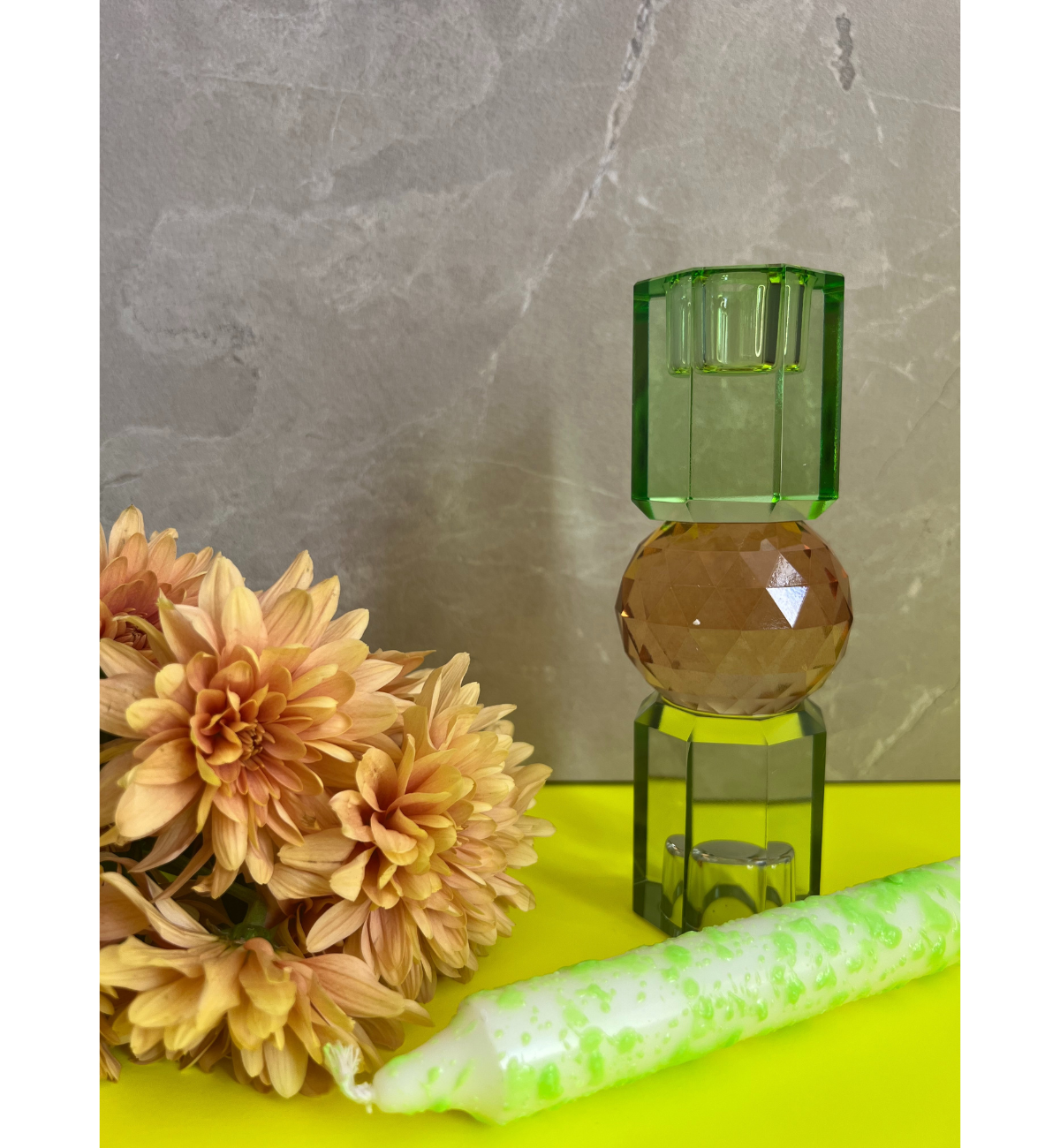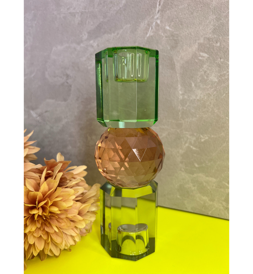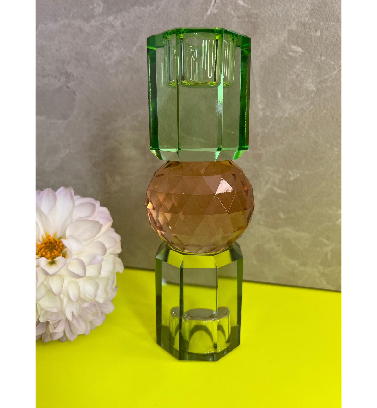 C'est Bon - Kerzenhalter Kristall Grün - Pfirsich - Oliv