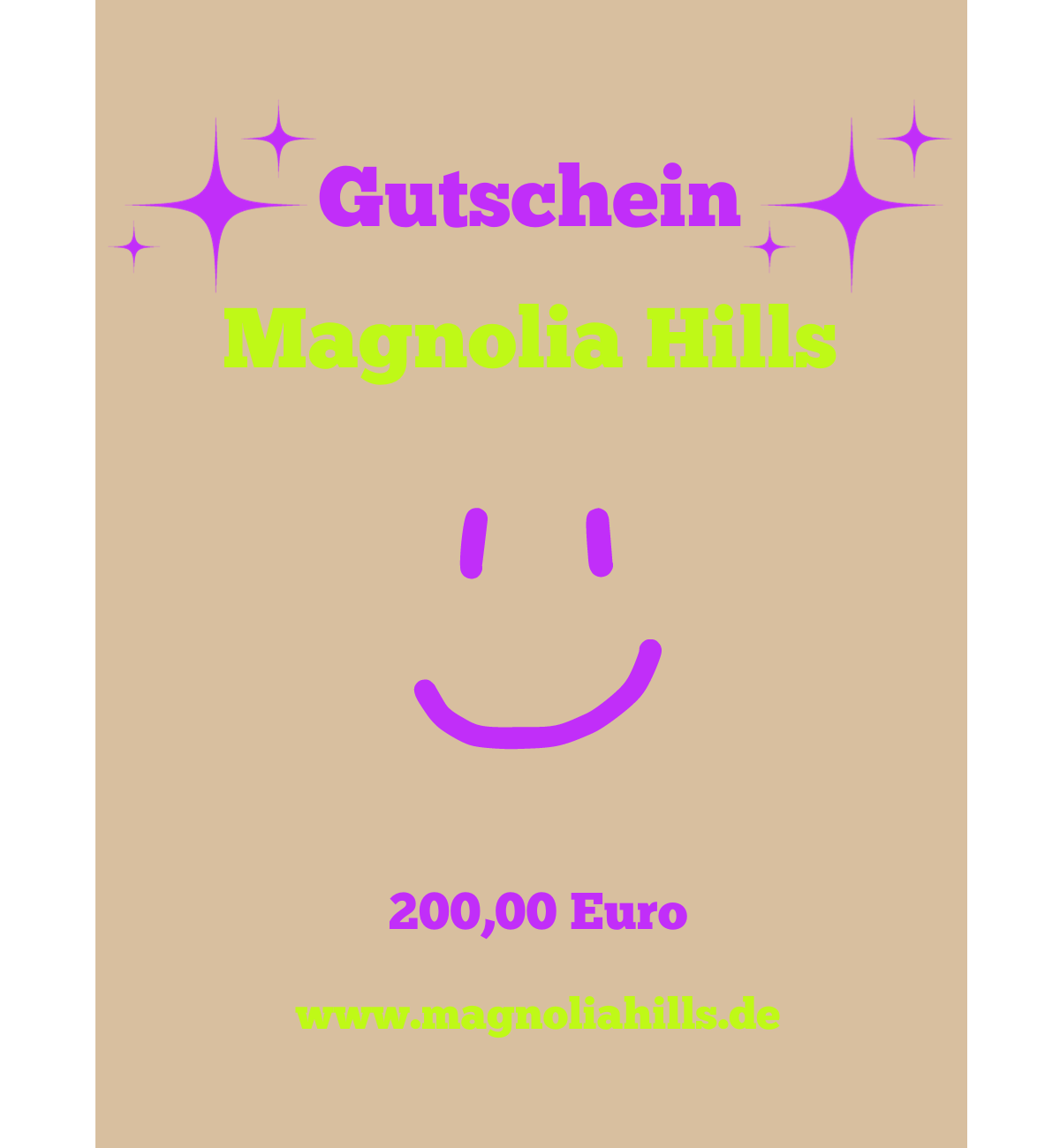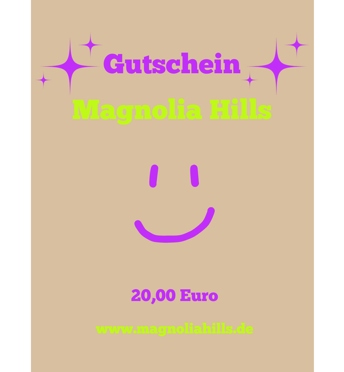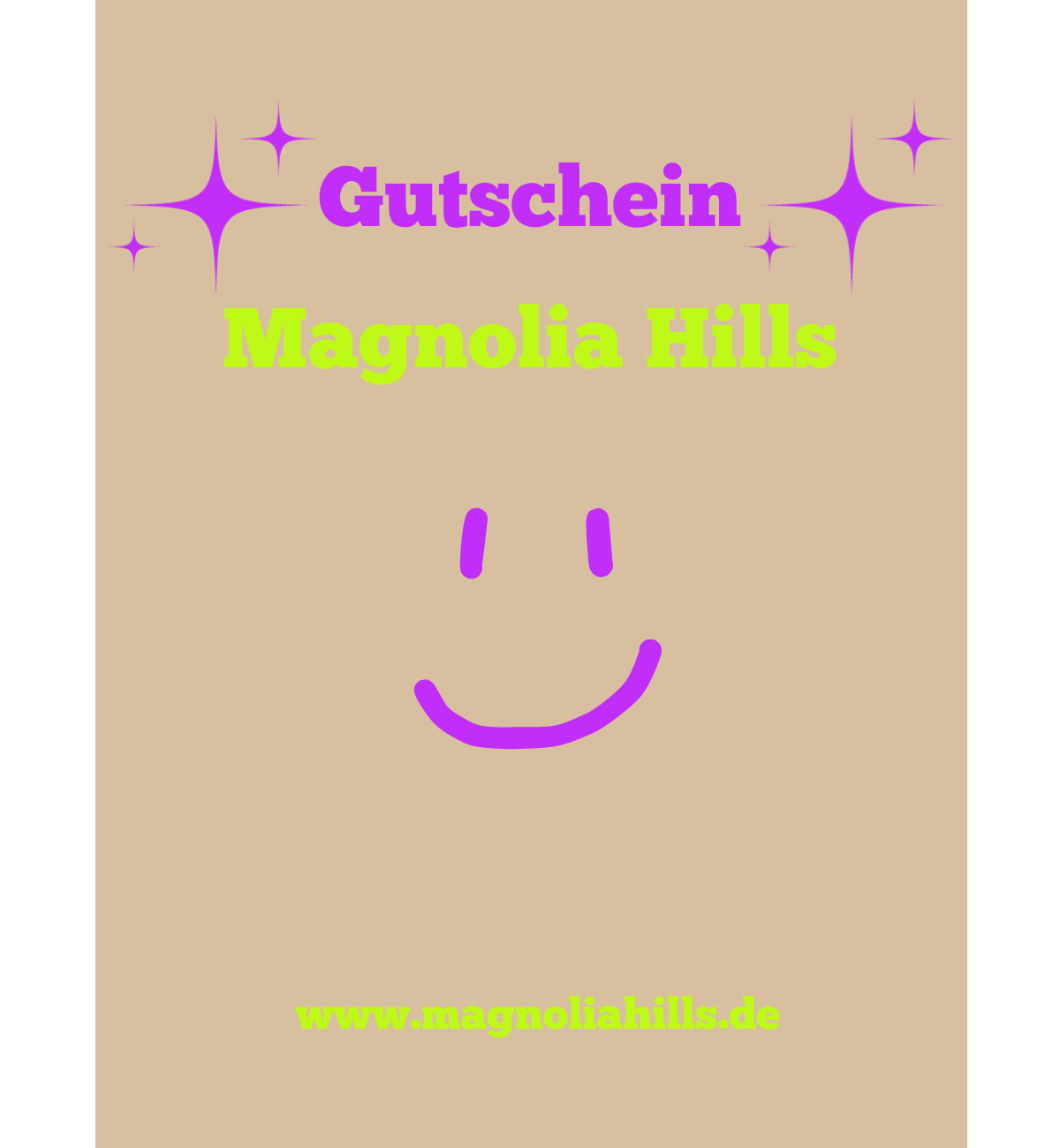 Du kannst dich nicht entscheiden, was du als Geschenk kaufen möchtest und bist von den Produkten hin- und hergerissen. Dann kannst du mit dem Magnolia Hills Gutschein nichts Falsch machen, um jemanden eine besondere Freude zu machen. Egal, welcher Anlass - ob zum Geburtstag, zur Hochzeit oder zu Weihnachten - Gutscheine verschenken, ist immer eine hervorragende Idee.