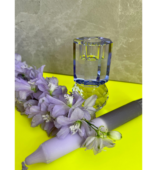 Der abgebildete Kristall Kerzenhalter in der Farbe Blau ist ein absolutes Highlight, der für Stabkerzen geeignet ist und total im Trend des Modern Vintage liegt. Klare Linien und glänzendes Glas machen aus den Kerzenständern kleine Skulpturen, die im richtigen Licht ganz wunderbar funkeln.