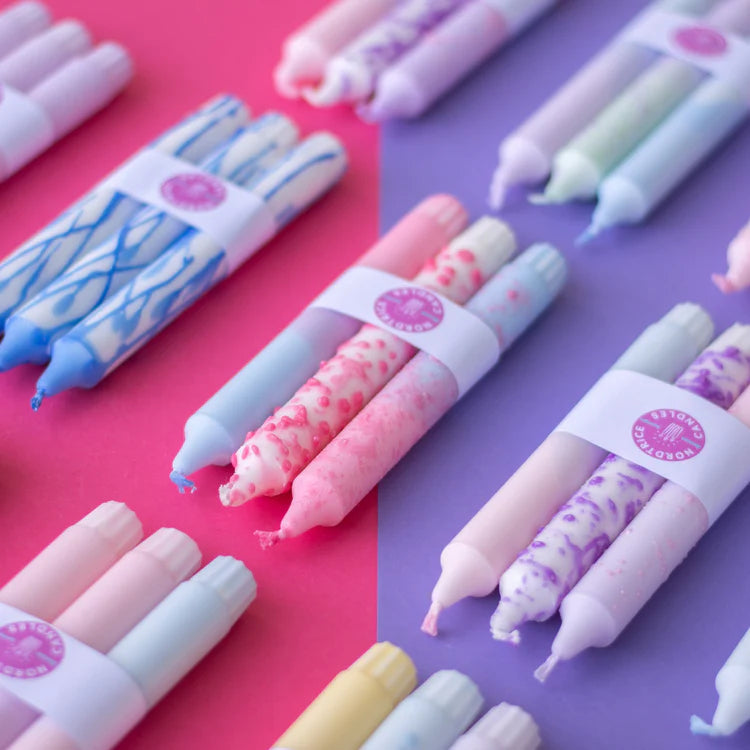 Die "No home is complete without cosy candles"-Kerzen sind ein einzigartiges, dekoratives Wohnaccessoire, die dem Zuhause eine Atmosphäre der Gemütlichkeit verleihen. Wegen der Farbwahl sind die Kerzen ebenso ein ideales Geschenk für die nächste Babyparty.