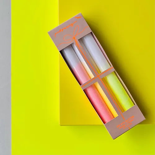 Das Set aus drei liebevoll handgefärbten Stabkerzen im Glitzerlook sind ein absoluter Eyecatcher. Die Dip Dye Glitter Kerzen zaubern mit ihren Glitter- und Neon-Look in Gelb, Orange und zartes Pink einen glamourösen Auftritt in den Zimmern und ziehen die Blicke auf sich. Die drei Kerzen werden in einer Verpackung versendet und eignen sich als perfektes Geschenk.