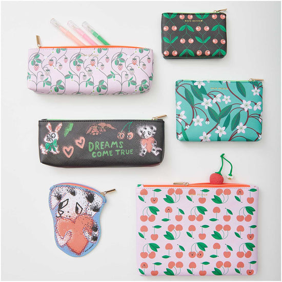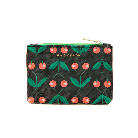 Das Etui von Paper Poetry/Rico Design mit frühlingshaften Kirschen und farblich passendem Reißverschluss bringt Ordnung ins Alltagschaos. Es besteht aus Polyurethan, hat eine goldene Prägung sowie einen goldenen Reißverschluss und eignet sich zum Beispiel zur Aufbewahrung von EC-Karten und Kleingeld sowie Geldscheinen.