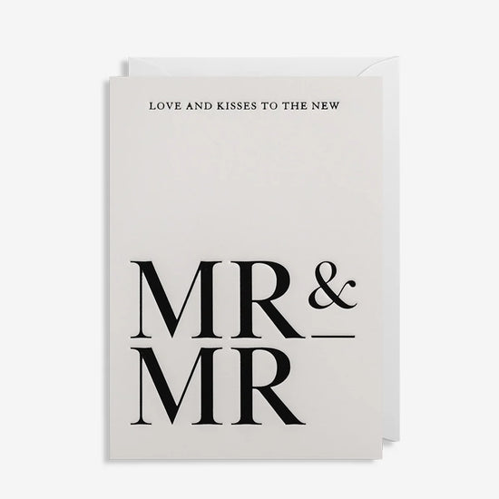 Die lässige Eleganz dieser Hochzeitskarte gepaart mit der liebevollen Botschaft "Love & Kisses To The New MR & MR" als Letterpress wird durch den weißen Umschlag abgerundet. Gratulation an das Hochzeitspaar!