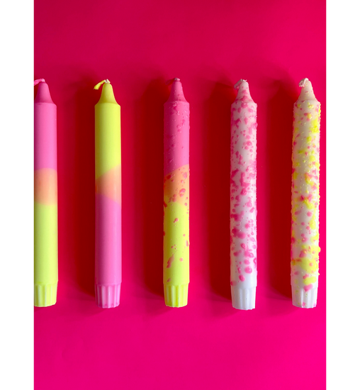 Ein Mix aus originellen, handdekorierten Stabkerzen im Neon-Look, die auf keiner Party fehlen dürfen. Es kann aus unterschiedlichen Farben ausgewählt werden. Welche Stabkerze von Nordtrice Candles ist dein Favorit?