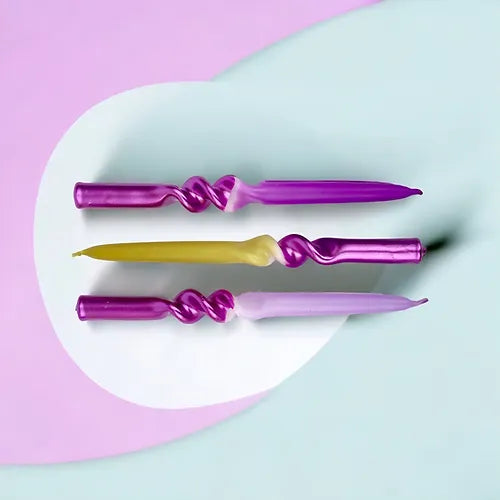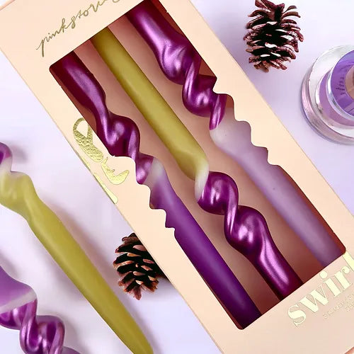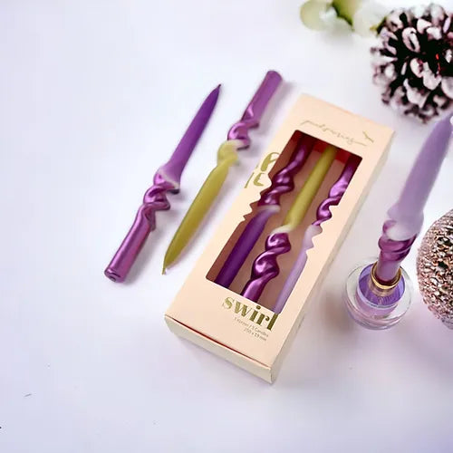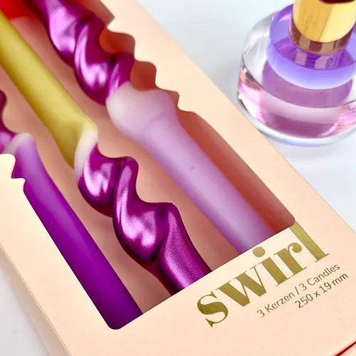 Eindrucksvolle Kerzen mit einer echten Hingucker-Drehung in der Mitte. Ein Set aus drei liebevoll handgedippten Kerzen im Lack-Look. Besonders schöne Verpackung - großartig geeignet als Geschenk.