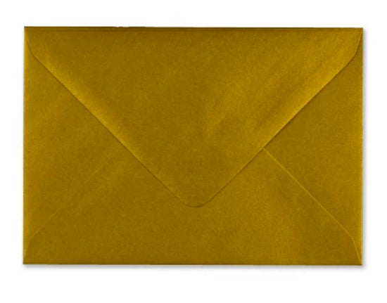 Die Klappkarte wird in Amsterdam auf hochwertigem, recyceltem Bio-Baumwollpapier gedruckt zusammen mit einem braunen, recycelten Umschlag in einer recycelten, durchsichtigen Kunststoffhülle verpackt. Die Karte ist im Inneren unbedruckt. Zu dieser Klappkarte gibt es einen goldenen Umschlag.