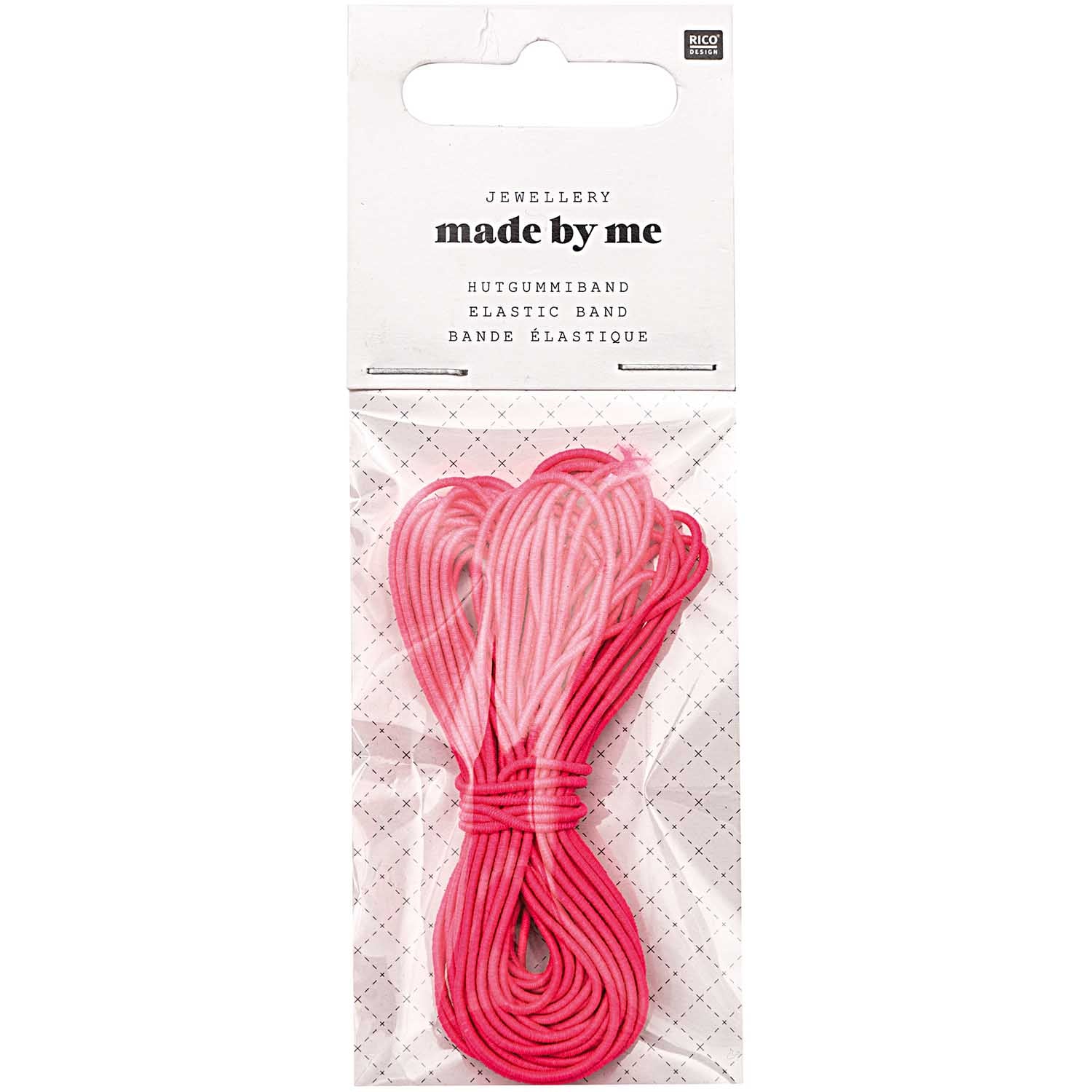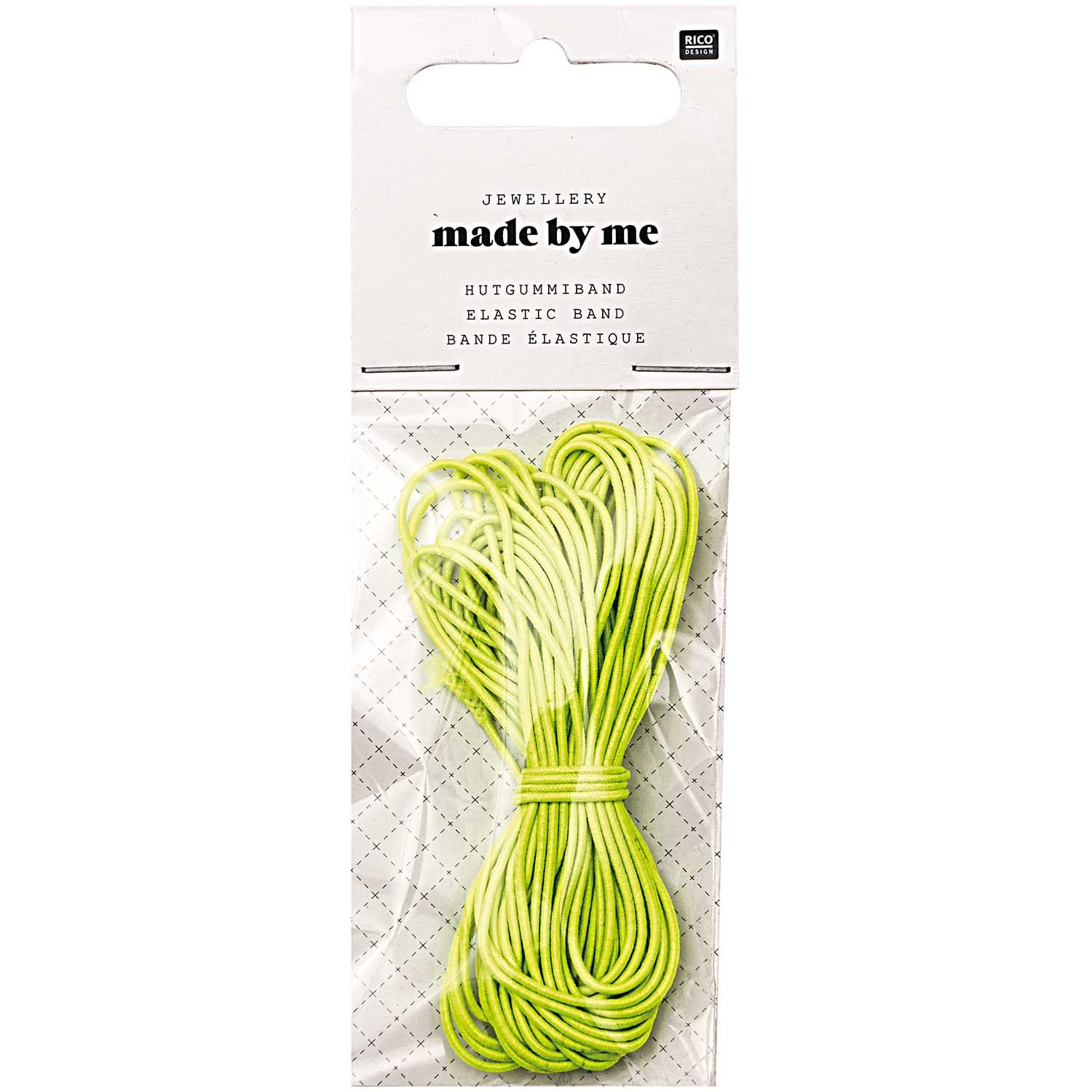 Das Hutgummiband von Rico Design ist ideal, für den eigenen, unkomplizierten Modeschmuck zu entwerfen. Dank dem elastischen Hutgummi lassen sich kurze Ketten oder Armbänder problemlos über den Kopf bzw. das Handgelenk ziehen. Darüber hinaus bietet sich das Hutgummi optimal an, um Geschenke einzupacken und damit zu basteln (für Masken) sowie für DIY-Projekte. Auch das Aufhängen von kleinen Deko-Objekten und kleinen Gegenständen ist mit dem Hutgummi möglich.