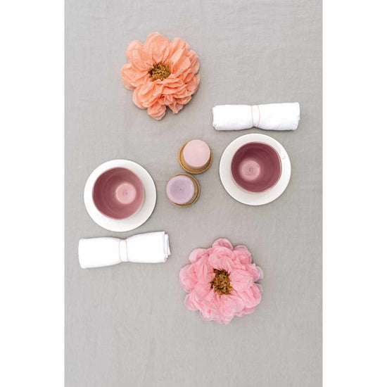 Die Tischdekoration wird durch die großen Seidenpapierblumen in Pastelltönen und anderen Seidenpapierblumen in Form von kleinen Kirschblüten und großen Kirschblüten sowie kleine Stiefmütterchen im Magnolia Hills Sortiment abgerundet. Welche Seidenpapierblume ist dein Favorit oder wählst du ein Ensemble aus verschiedenen Seidenblumen? Flower up your Life!