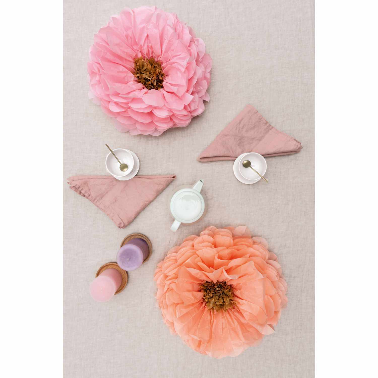 Die Tischdekoration wird durch die kleinen Seidenpapierblumen in Pastelltönen und anderen Seidenpapierblumen in Form von kleinen Kirschblüten und großen Kirschblüten sowie kleine Stiefmütterchen im Magnolia Hills Sortiment abgerundet. Welche Seidenpapierblume ist dein Favorit oder wählst du ein Ensemble aus verschiedenen Seidenblumen? Flower up your Life!