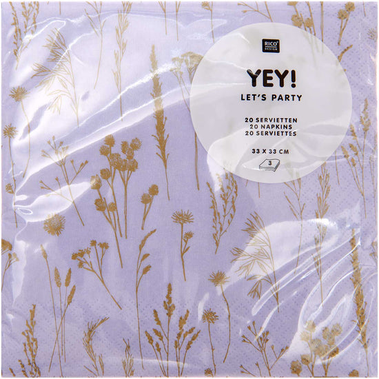 Mit den schönen Servietten der Serie YEY! Let’s Party von Rico Design wird die Tischdekoration einer Party oder Familienfeier abgerundet. Die 3-lagigen Servietten setzen farbliche Akzente auf der Festtafel und eignen sich darüber hinaus für vielseitige Bastelprojekte und DIYs. Die Servietten Gräser Lila werden in Deutschland produziert.